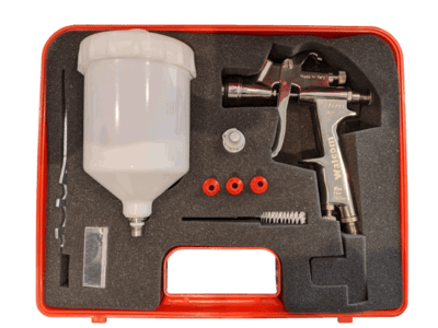 The Walcom Slim HTE is the favourite setup for clearcoat. The HTE is designed to atomise the paint very fine meaning spraying clearcoat is effortless.